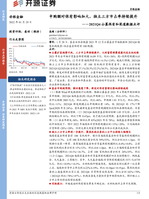 【开源证券】【20220129】2021Q4公募保有和渠道数据点评:申购额对保有影响加大,独立三方市占率持续提升-5页 证券期货研究报告