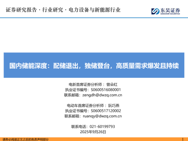 【东吴证券】【202509】国内储能深度:配储退出,独储登台,高质量需求爆发且持续-48页 证券期货研究报告
