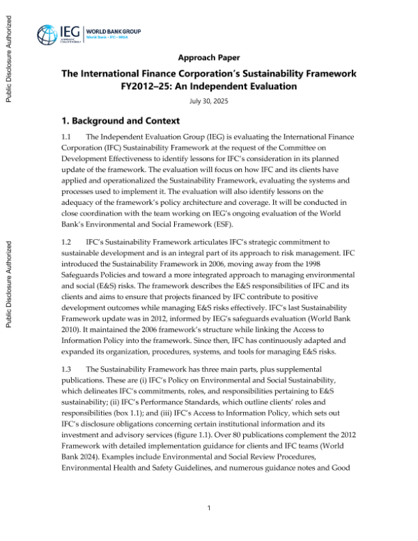 【Independent Evaluation Group】【202507】The International Finance Corporation’s Sustainability Framework FY2012–25 An Independent Evaluation-34页 政策文件