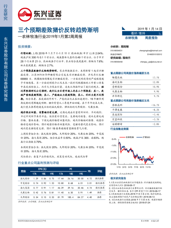 【东兴证券】【20190114】农林牧渔行业2019年1月第2周周报:三个预期差致猪价反转趋势渐明-25页 行业研究