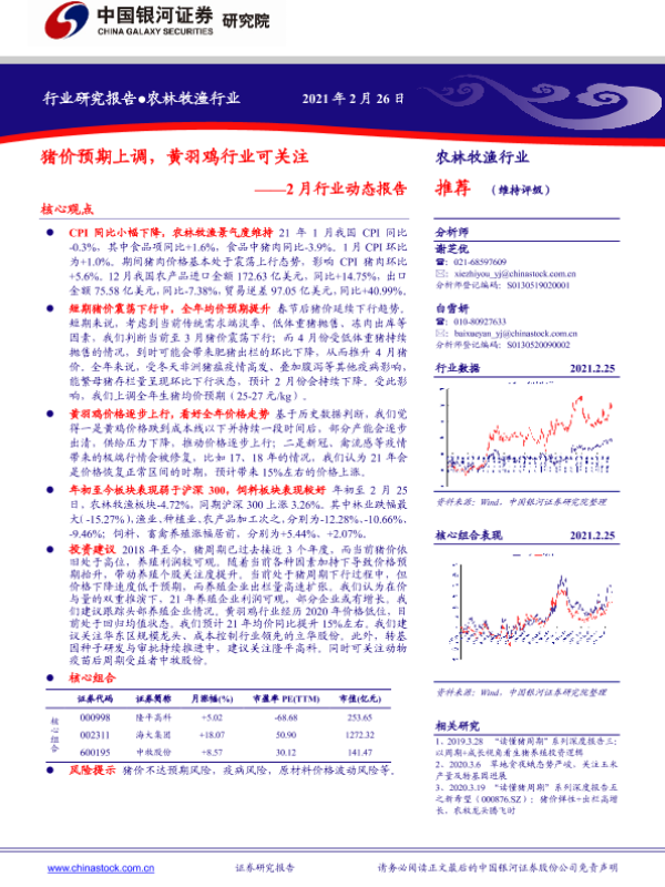 【银河证券】【20210226】20210226-中国银河-农林牧渔2月行业动态报告:猪价预期上调,黄羽鸡行业可关注-18页 行业研究