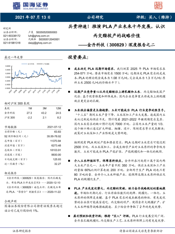【国海证券】【20210713】兵贵神速!推演PLA产业未来十年发展,认识丙交酯投产的战略价值-22页 行业研究