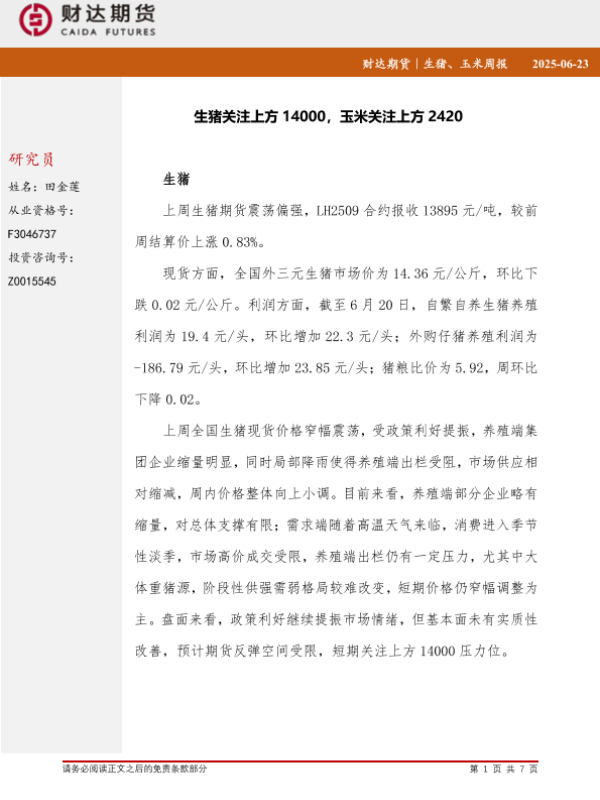 【财达期货】【20250623】生猪_玉米周报-7页 证券期货研究报告
