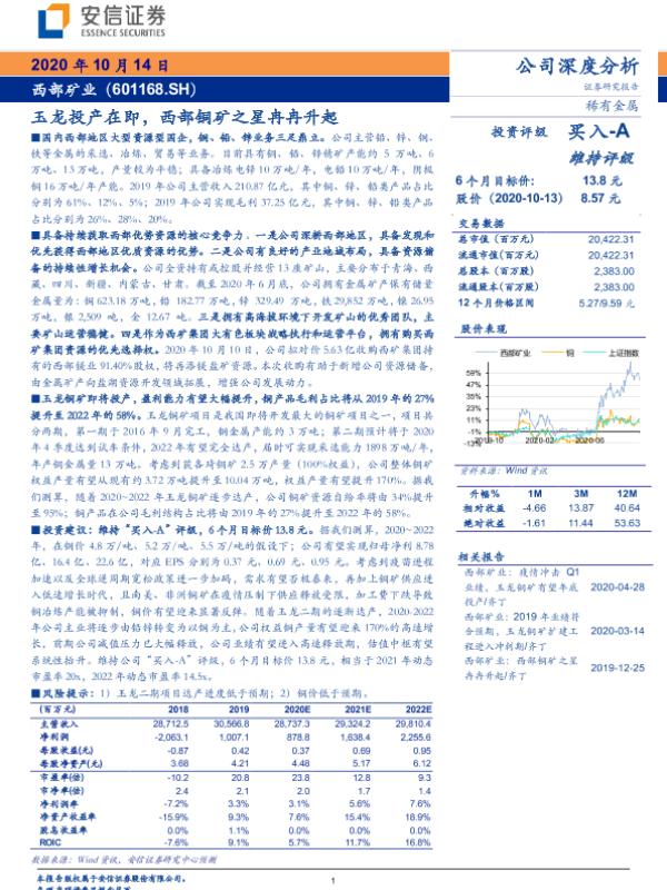 【安信证券】【20201014】玉龙投产在即,西部铜矿之星冉冉升起-26页 行业研究