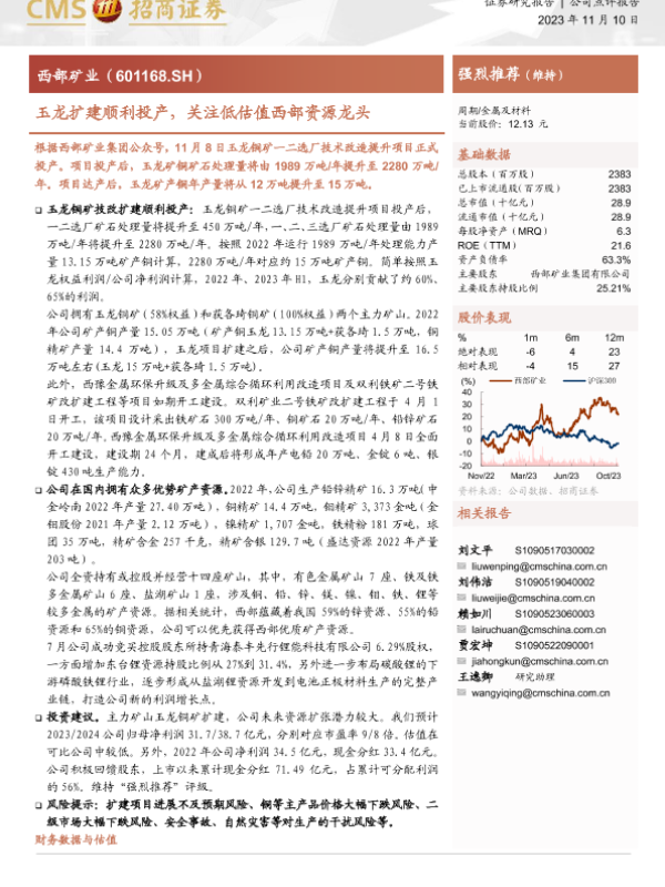 【海通证券】【20231110】玉龙扩建顺利投产,关注低估值西部资源龙头-21页 行业研究