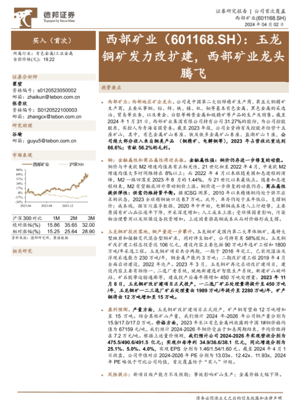 【德邦证券】【20240402】西部矿业-601168.SH-玉龙铜矿发力改扩建,西部矿业龙头腾飞-29页 行业研究