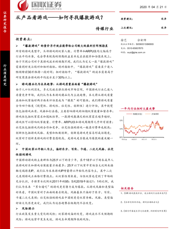 【国联证券】【20200421】从产品看游戏——如何寻找爆款游戏?-32页 行业研究
