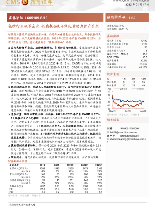 【海通证券】【20220117】富春染织-605189.SH-色纱行业领军企业 低能耗&强环保优势助力扩产升级-15页 公司研究