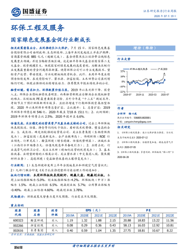 【国盛证券】【20200719】环保工程及服务行业周报:国家绿色发展基金促行业新成长-11页 行业研究