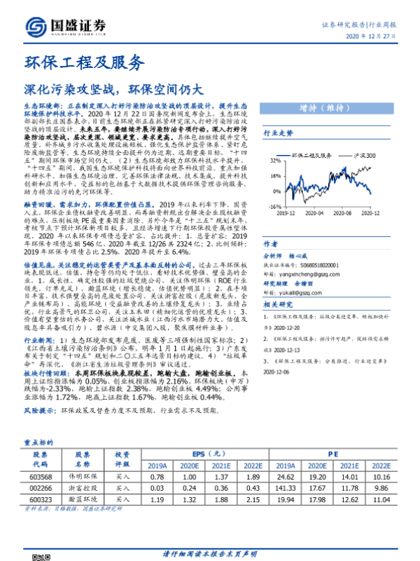 【国盛证券】【20201227】环保工程及服务行业周报:深化污染攻坚战,环保空间仍大-13页 行业研究