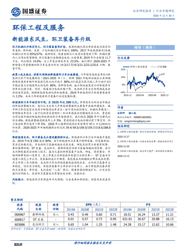 【国盛证券】【20201230】环保工程及服务行业:新能源东风至,环卫装备再升级-22页 行业研究