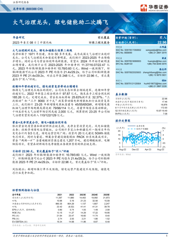 【华泰证券】【20230808】龙净环保-600388.SH-大气治理龙头,绿电储能助二次腾飞-23页 行业研究