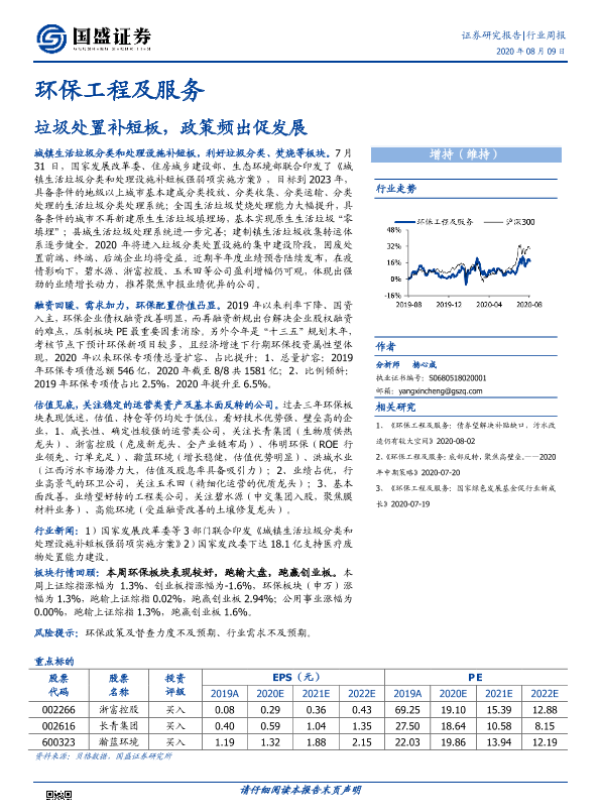 【国盛证券】【20200809】环保工程及服务行业周报:垃圾处置补短板,政策频出促发展-14页 行业研究