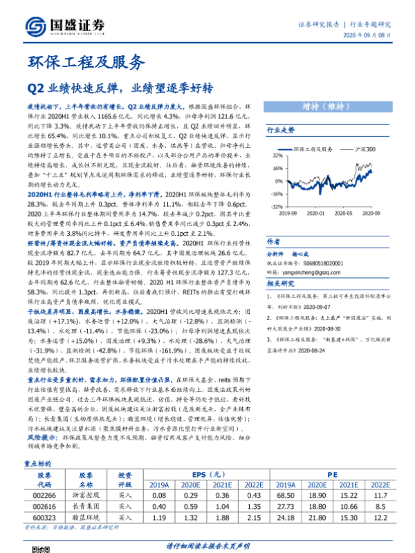 【国盛证券】【20200908】环保工程及服务行业专题研究:Q2业绩快速反弹,业绩望逐季好转-25页 行业研究