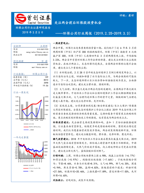 【首创证券】【20190305】环保公用行业周报:关注两会前后环保股投资机会-17页 行业研究