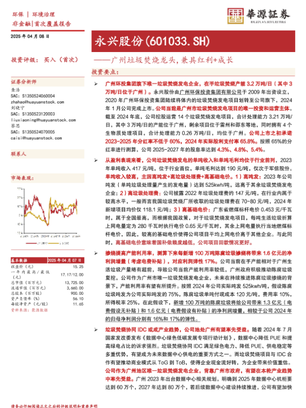 【华源证券】【20250408】永兴股份——广州垃圾焚烧龙头,兼具红利+成长-19页 公司研究