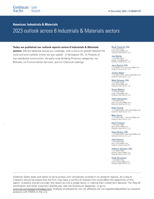 【Goldman Sachs】【20221214】2023年跨8个工业和材料行业的展望-25页 行业研究
