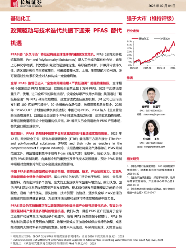【长城证券】【202602】基础化工行业深度报告:政策驱动与技术迭代共振下迎来PFAS替代机遇-57页 证券期货研究报告