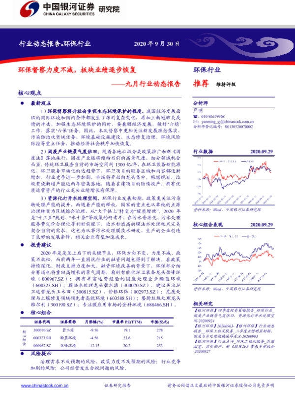 【银河证券】【20200930】环保行业九月行业动态报告:环保督察力度不减,板块业绩逐步恢复-21页 行业研究