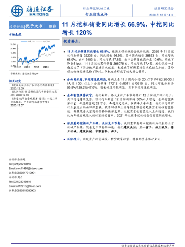 【海通证券】【20201214】机械工业行业信息点评:11月挖机销量同比增长66.9%,中挖同比增长120%-4页 行业研究