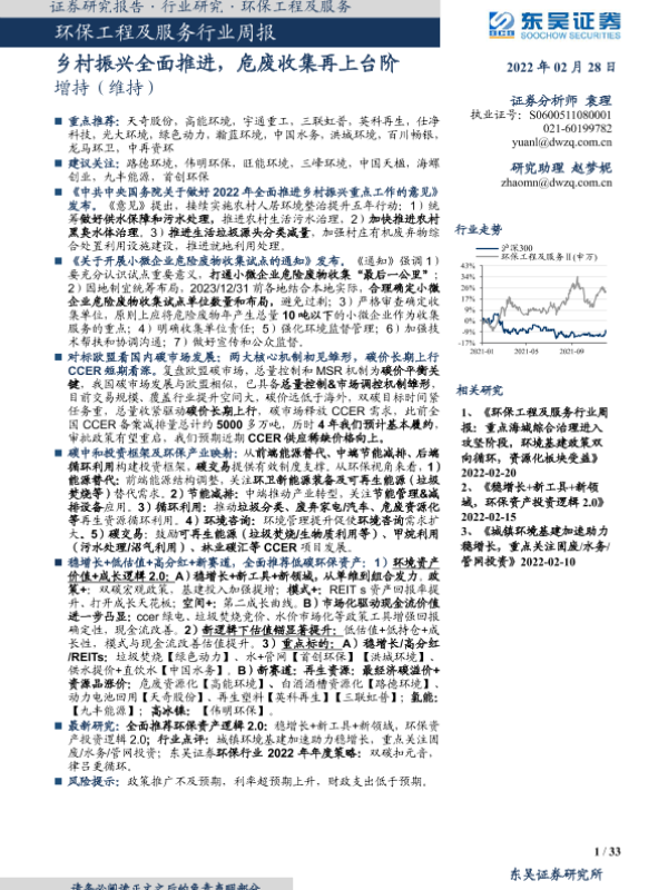 【东吴证券】【20220228】环保工程及服务行业周报:乡村振兴全面推进,危废收集再上台阶-33页 行业研究