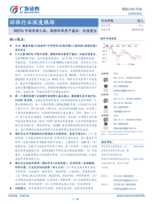 【广发证券】【20230102】环保行业深度跟踪:REITs申报受理火热,期待环保资产盘活、价值重估-18页 行业研究
