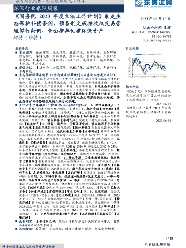 【东吴证券】【20230613】环保行业跟踪周报:国务院2023年度立法工作计划-28页 行业研究