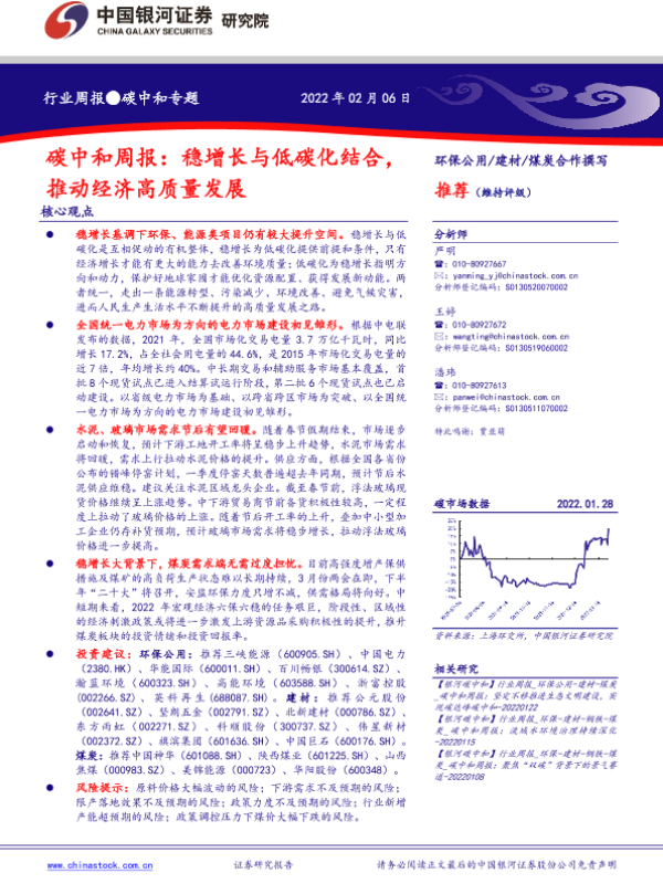 【银河证券】【20220206】碳中和周报:稳增长与低碳化结合,推动经济高质量发展-20页 行业研究