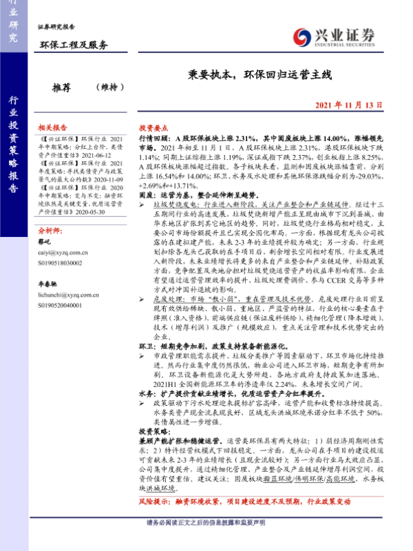 【兴业证券】【20211113】环保回归运营主线-30页 行业研究