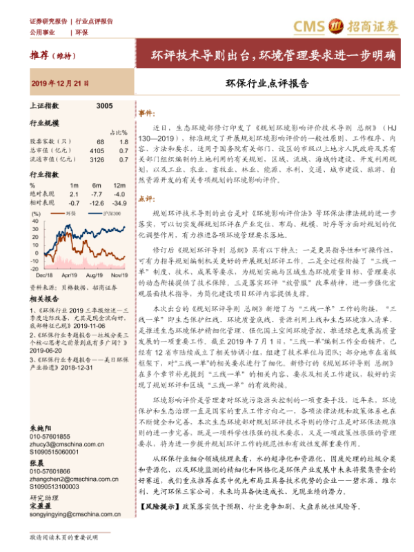 【海通证券】【20191221】环保行业点评报告:环评技术导则出台,环境管理要求进一步明确-2页 证券期货研究报告
