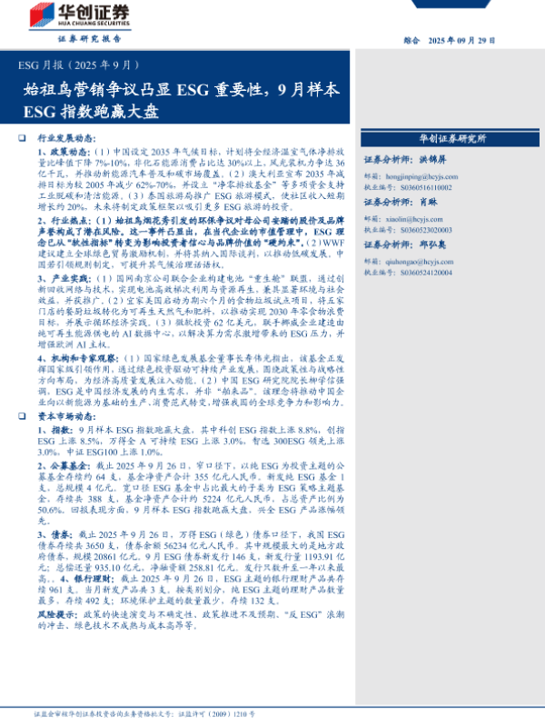 【华创证券】【202509】ESG月报(2025年 9月)-13页 证券期货研究报告