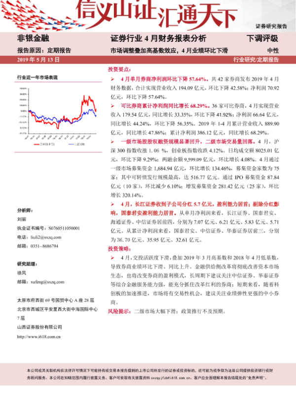 【山西证券】【20190513】证券行业4月财务报表分析:市场调整叠加高基数效应,4月业绩环比下滑-6页 行业研究