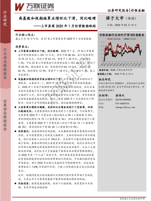 【万联证券】【20200214】上市券商2020年1月经营数据跟踪-10页 行业研究