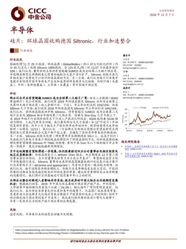 【中金公司】【20201207】半导体:硅片:环球晶圆收购德国Siltronic,行业加速整合-7页 行业研究