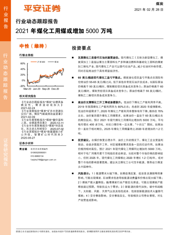 【平安证券】【20210228】2021年煤化工用煤或增加5000万吨-8页 行业研究