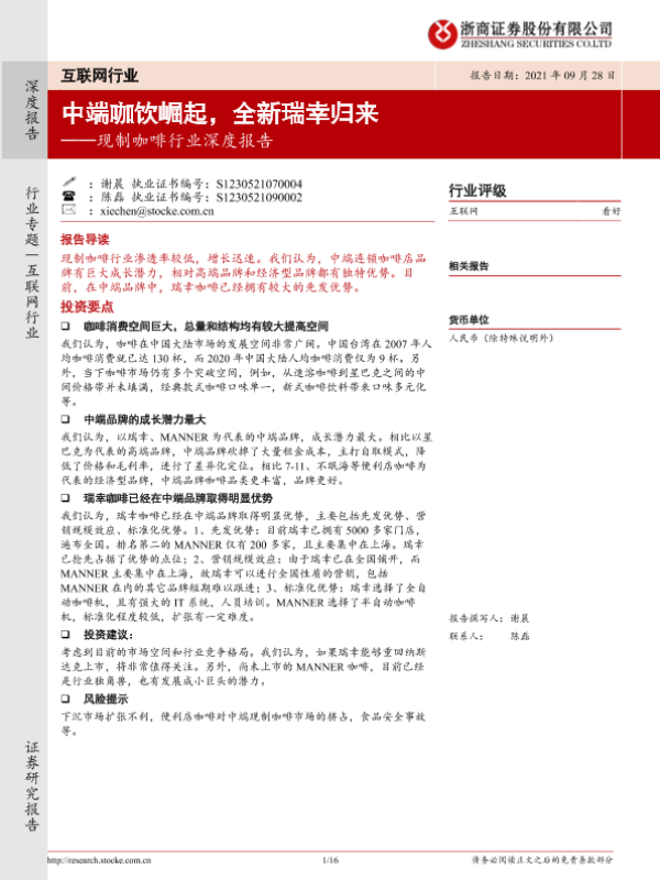 【浙商证券】【20210928】现制咖啡行业深度报告:中端咖饮崛起,全新瑞幸归来-16页 行业研究