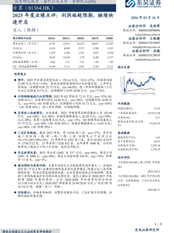 【东吴证券】【202603】2025年度业绩点评:利润端超预期,继续快速开店-3页 证券期货研究报告