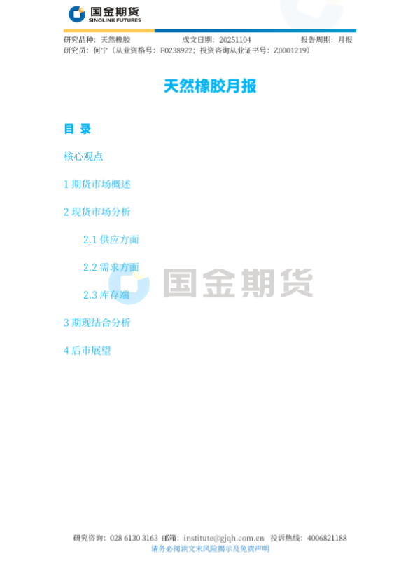 【国金期货】【202511】天然橡胶月报-6页 证券期货研究报告