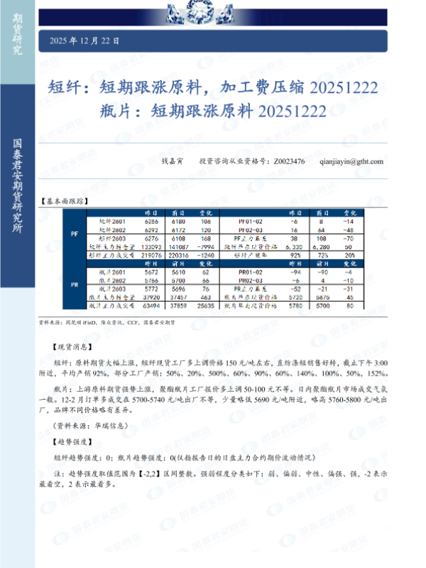 【国泰君安期货】【202512】短纤_短期跟涨原料_加工费压缩_瓶片_短期跟涨原料-2页 证券期货研究报告
