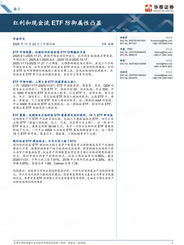 【华泰证券】【202511】ETF点评:红利和现金流ETF防御属性凸显-12页 证券期货研究报告