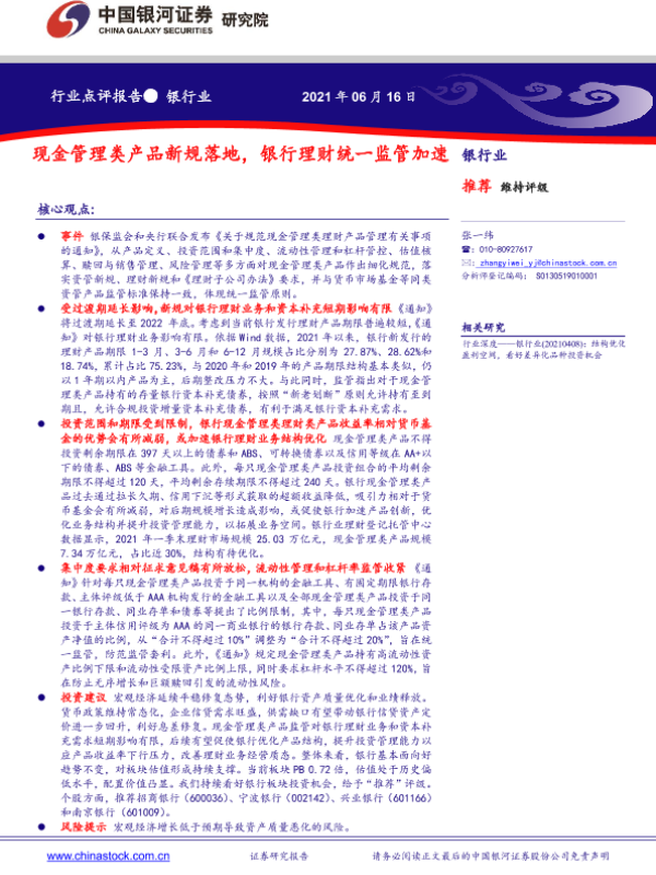 【银河证券】【20210616】现金管理类产品新规落地,银行理财统一监管加速-2页 行业研究