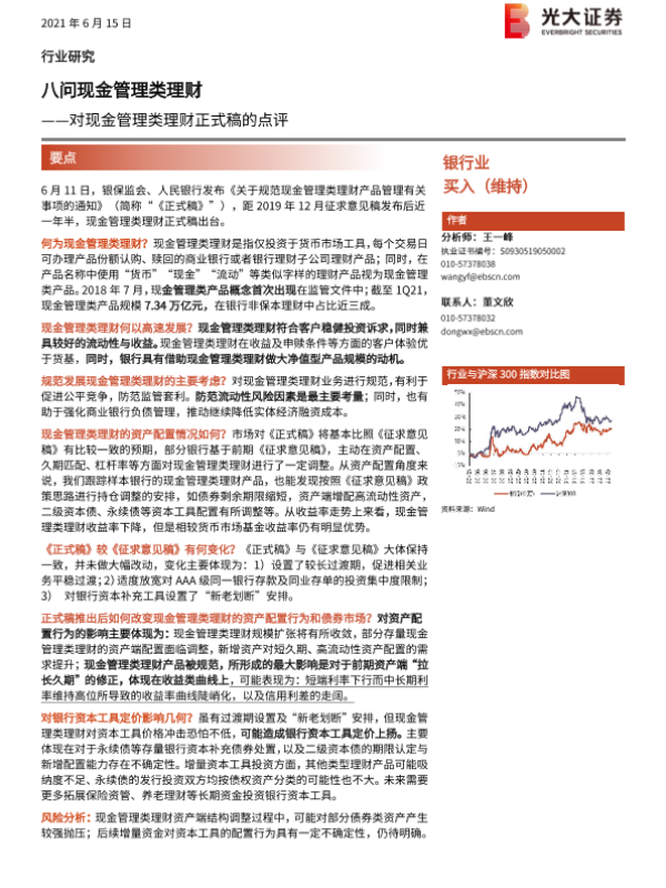 【光大证券】【20210615】对现金管理类理财正式稿的点评-八问现金管理类理财-13页 行业研究