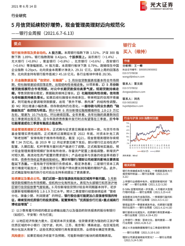 【光大证券】【20210614】5月信贷延续较好增势,现金管理类理财迈向规范化-11页 行业研究