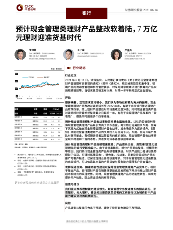 【国泰君安证券】【20210614】短期影响中性,长期利好优质银行——《关于规范现金管理类理财产品管理有关事项的通知》点评-3页 行业研究