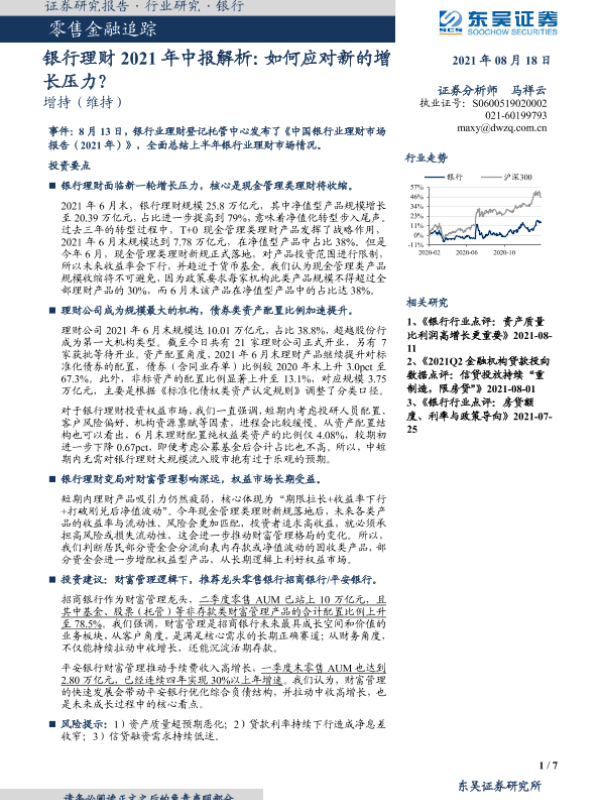 【东吴证券】【20210818】零售金融追踪:银行理财2021年中报解析:如何应对新的增长压力?-7页 行业研究