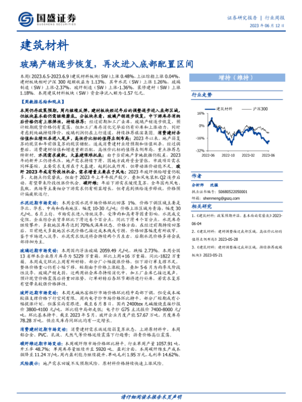 【国盛证券】【20230612】建筑材料行业周报:玻璃产销逐步恢复,再次进入底部配置区间-15页 行业研究