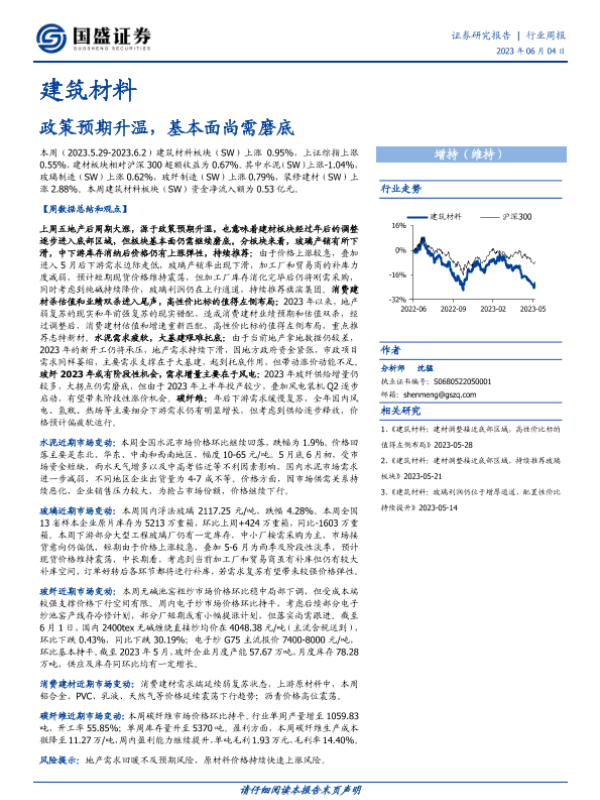 【国盛证券】【20230604】建筑材料行业周报:政策预期升温,基本面尚需磨底-15页 行业研究