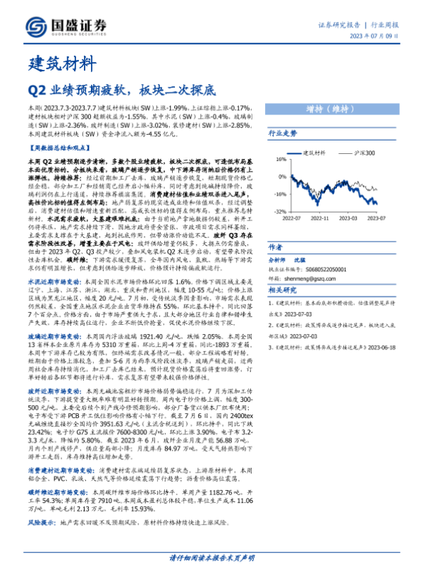 【国盛证券】【20230709】建筑材料行业周报:Q2业绩预期疲软,板块二次探底-16页 行业研究