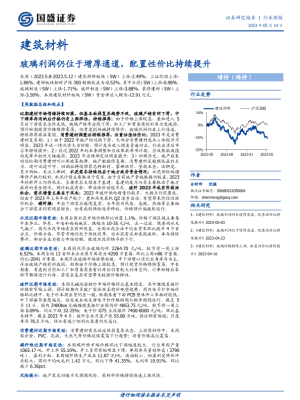 【国盛证券】【20230514】建筑材料行业周报:玻璃利润仍位于增厚通道,配置性价比持续提升-15页 行业研究
