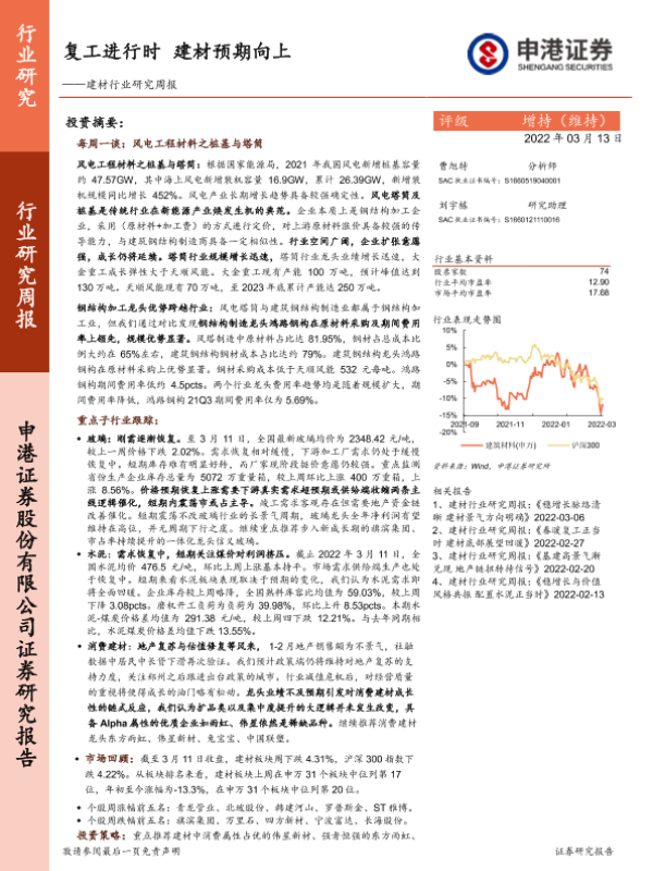 【申港证券】【20220313】复工进行时 建材预期向上-14页 行业研究